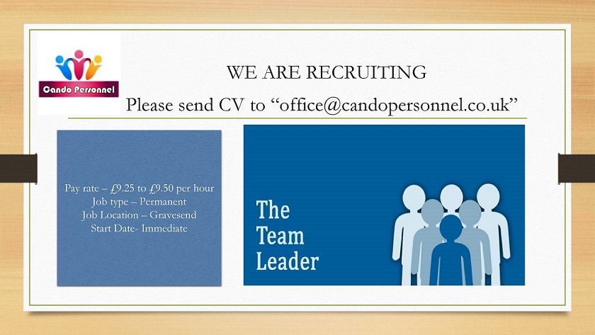 Please send you CV to admin@candopersonnel.co.uk or call our office on 01474491709 / 07975572134